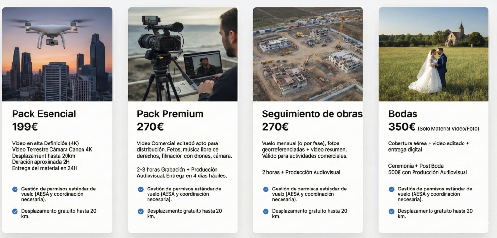 - ✅ Gestión de permisos estándar de vuelo (incluyendo notificaciones a AESA y coordinación con fuerzas de seguridad si es necesario).
